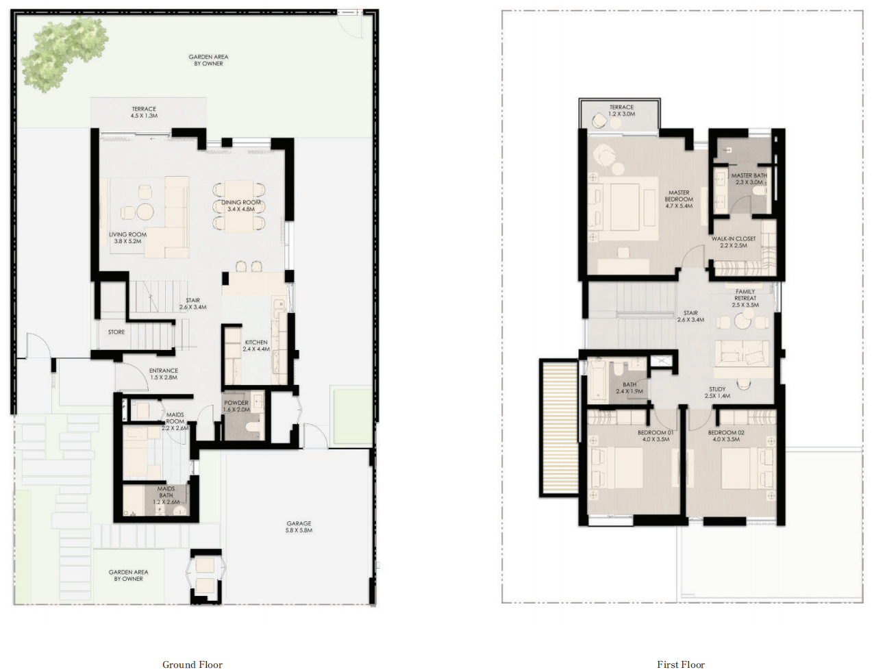⭐3房独栋,共328套,建筑面积276㎡,占地面积345㎡,510万迪起