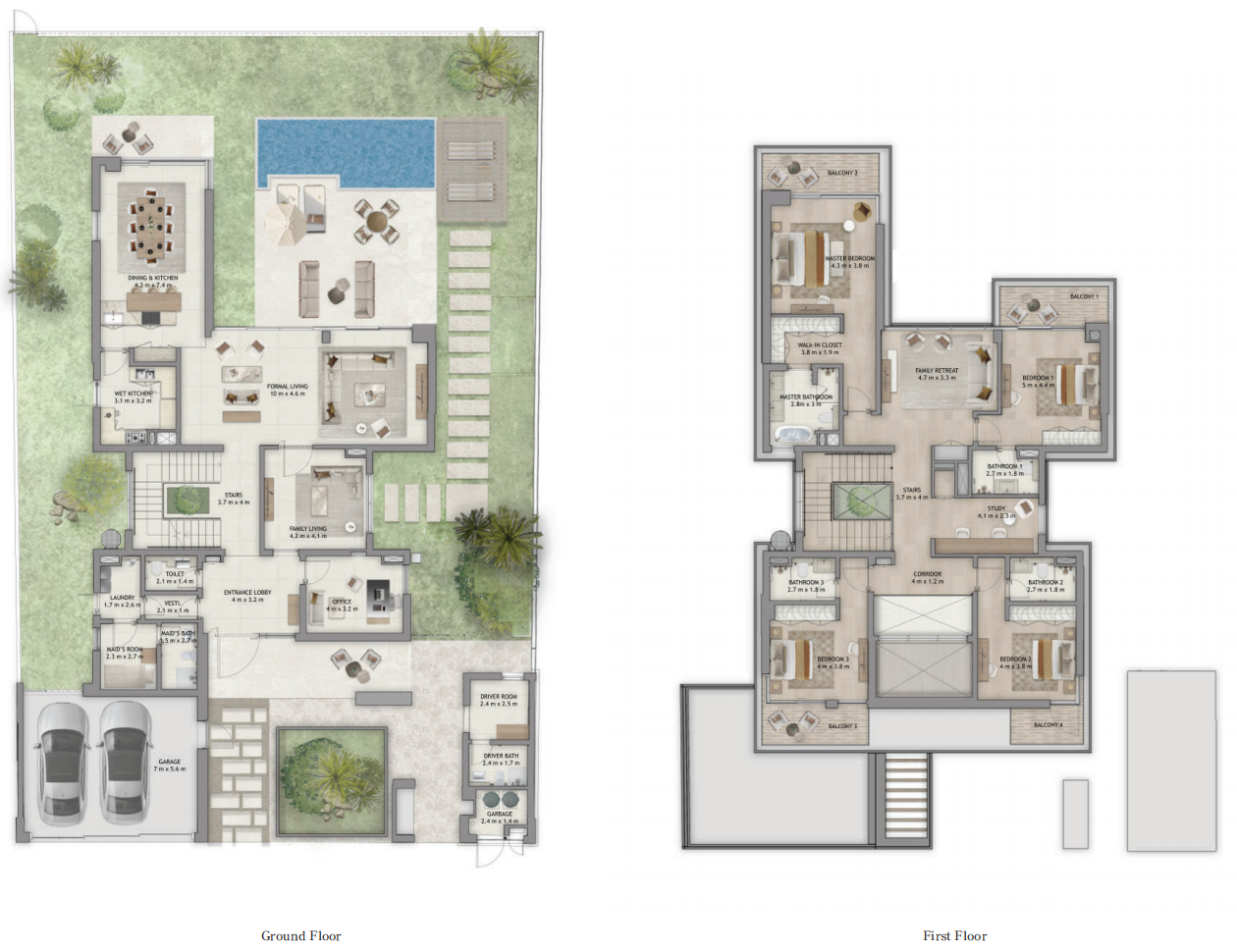 整个社区占地130万平米,但仅规划有903套独栋别墅,社区植被覆盖率高达80%,是迪拜非常少有的森林别墅。