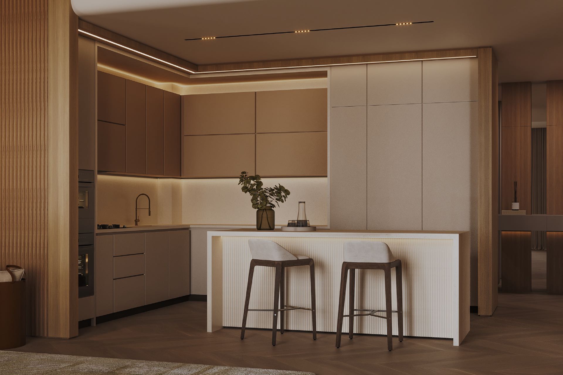 高品质交付,每一户都是精装修,整装厨房,带私人泳池,并配有智能化家居系统和电子门锁。![]()