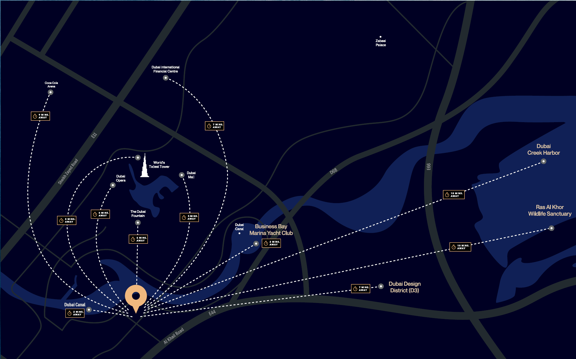Skyrise 坐落在商务港的中心位置。住户不仅可以欣赏到迪拜标志性的哈利法塔天际线美景,还可以轻松抵达迪拜重要的商业区和休闲娱乐中心。出行及其便利,即可选择运河水路、也可3分钟接轨E44主干道,距离政府规划地铁站一步之遥。