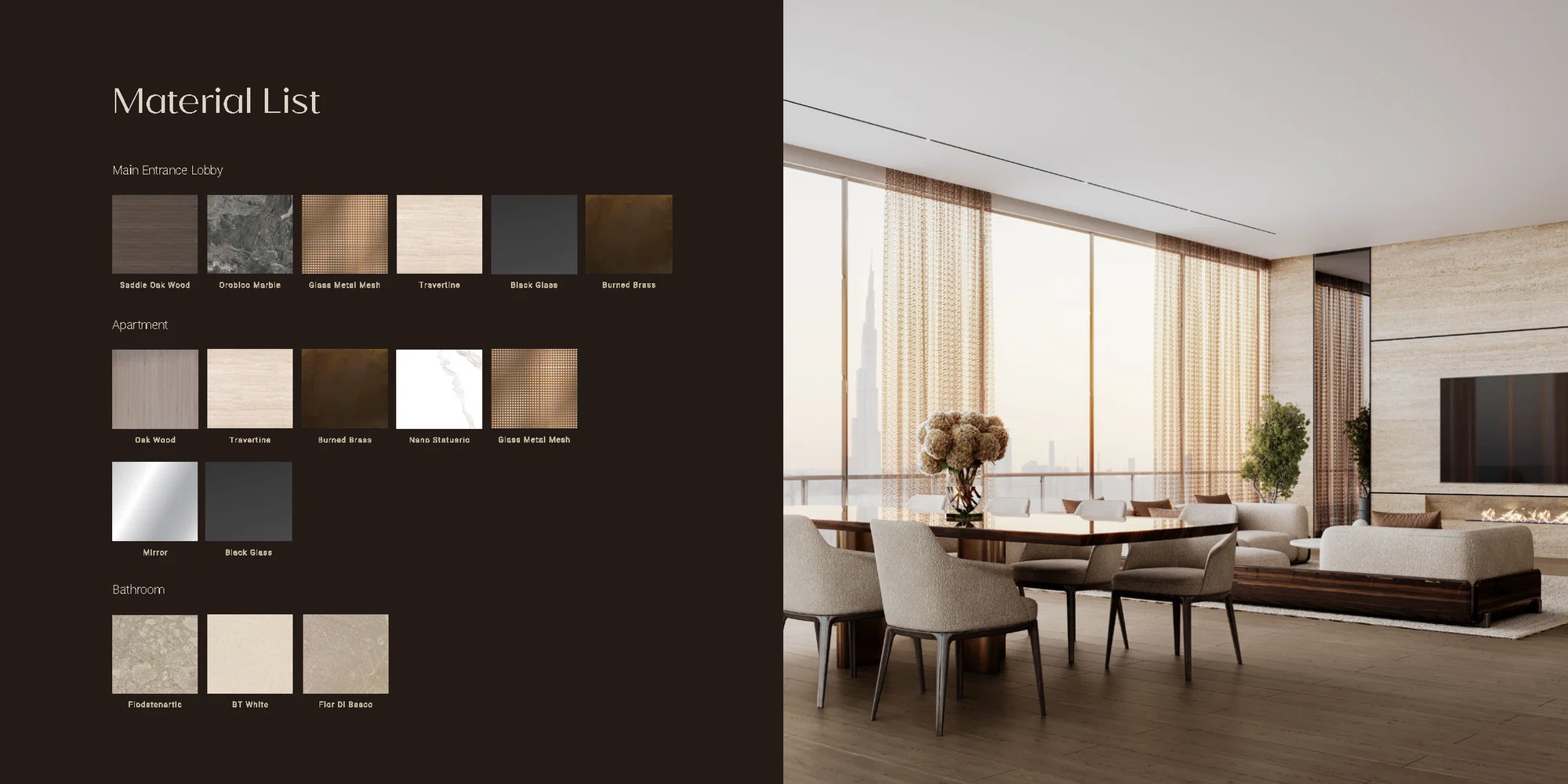 金属饰面 —— 暗黑铜色或优雅闪耀的金色等精致的金属饰面成为点缀,使空间更加凝练。